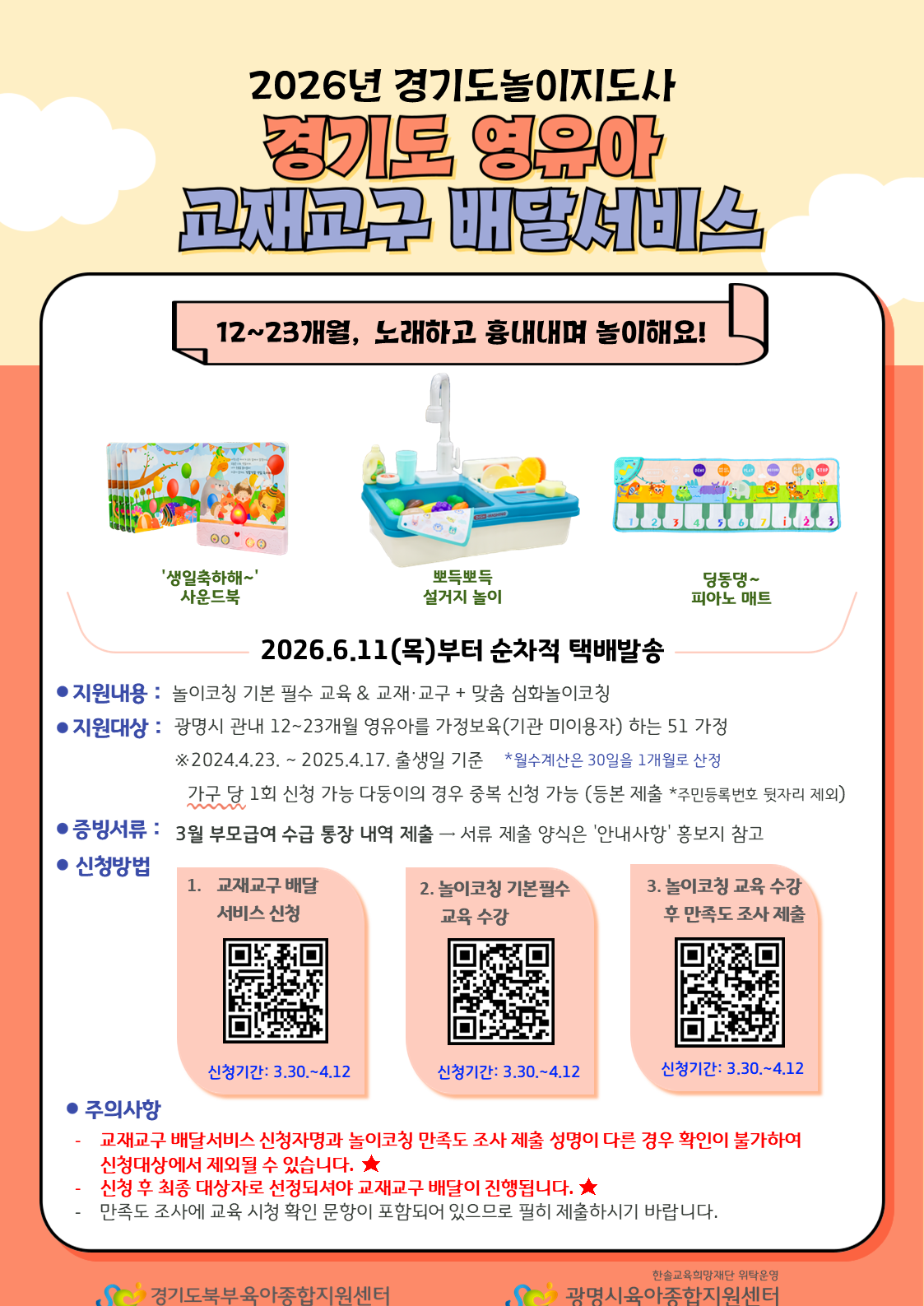 [0~11개월 대상] <경기도 영유아 교재교구 배달 서비스> 신청 안내