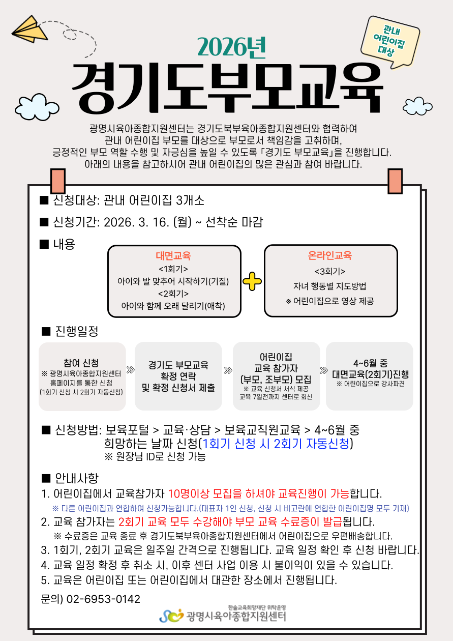 [안내] 어린이집대상 <2026 경기도 부모교육> 모집 안내