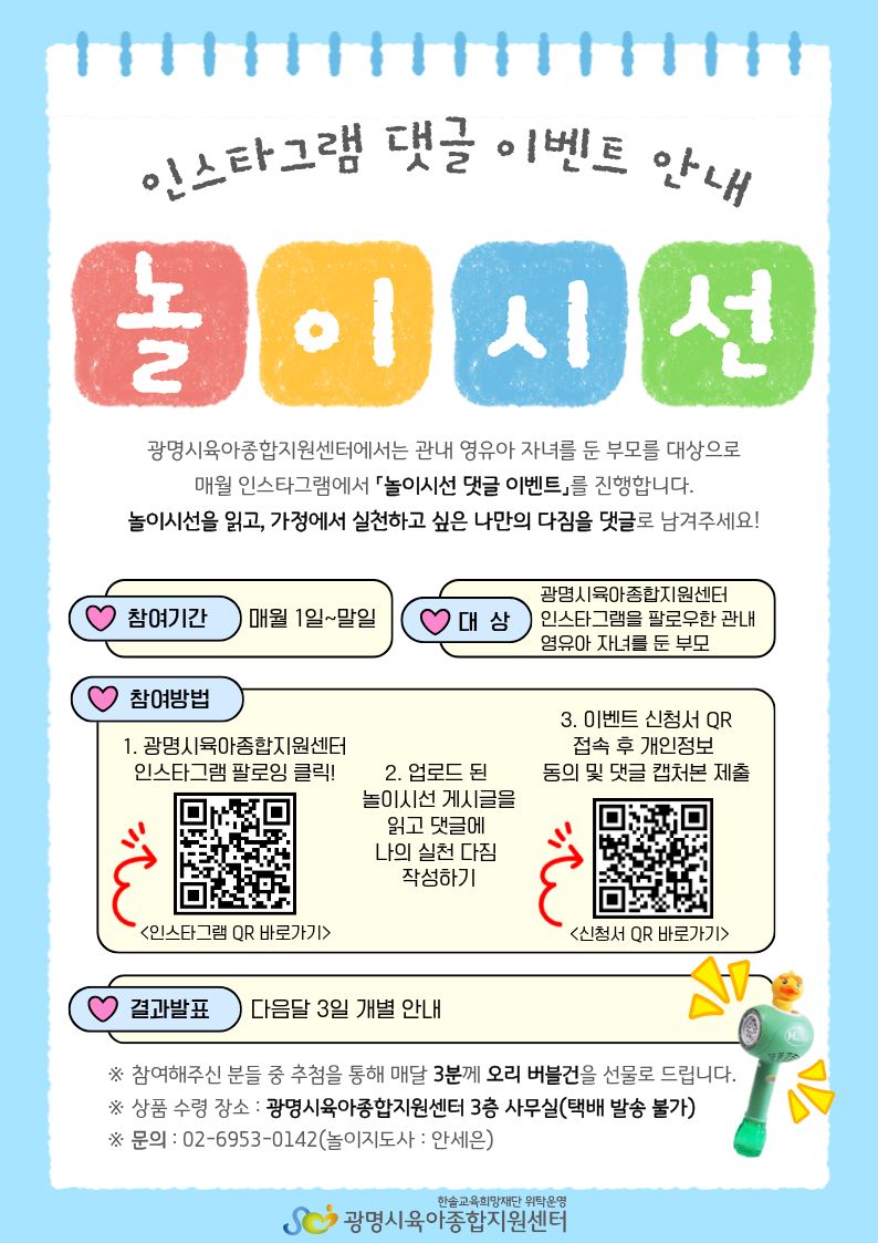 [안내] 놀이시선 인스타그램 댓글 이벤트 안내