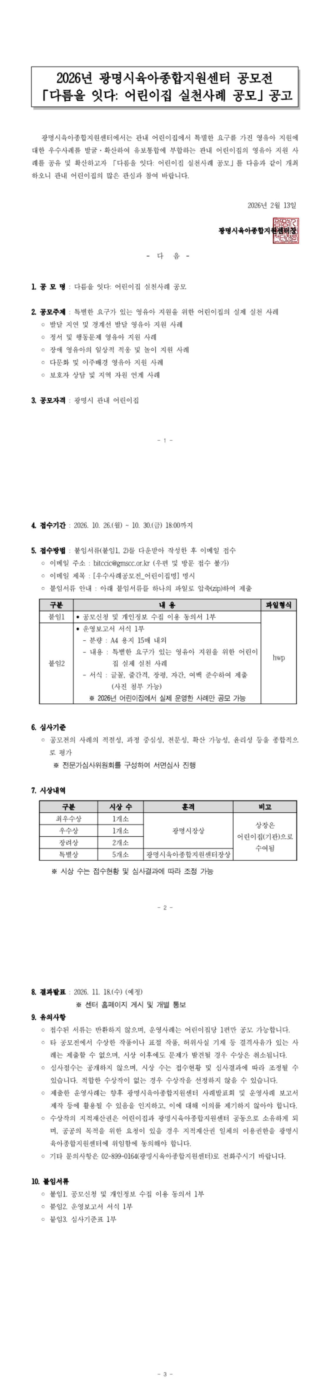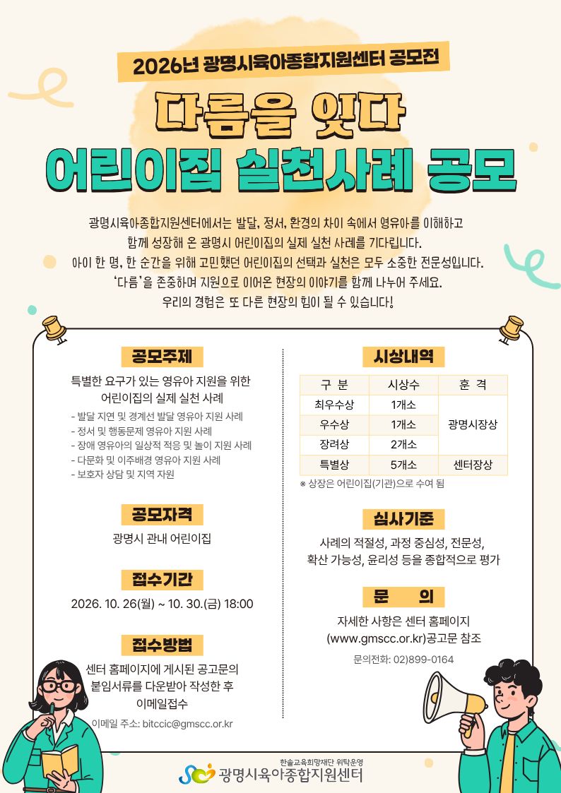 [공고] 2026년 광명시육아종합지원센터 공모전 「다름을 잇다: 어린이집 실천사례 공모」 공고