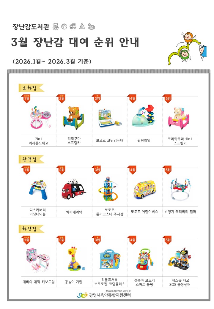 [공지] [대여순위]2026년 3월 장난감 대여순위 안내