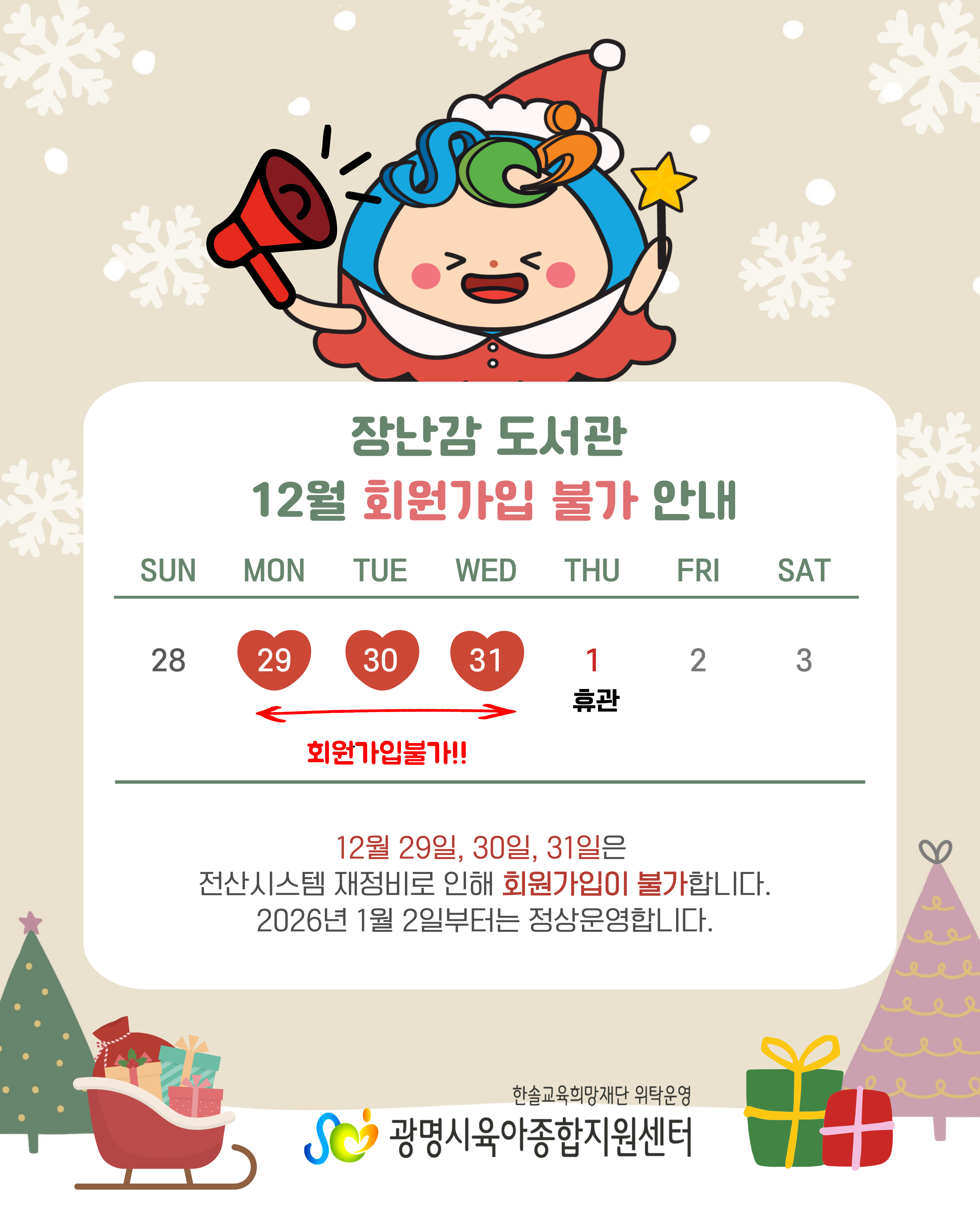 [공지] 12월 회원가입 일시 중단 안내 (29일~31일)