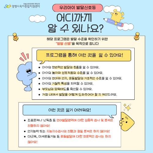 발달에 어려움을 겪는 영유아기 아동들 대상으로 발달선별검사를 진행합니다.