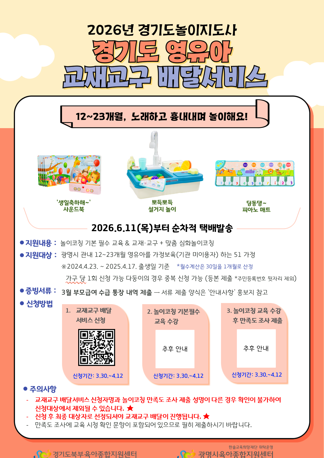 [0~11개월 대상] <경기도 영유아 교재교구 배달 서비스> 신청 안내