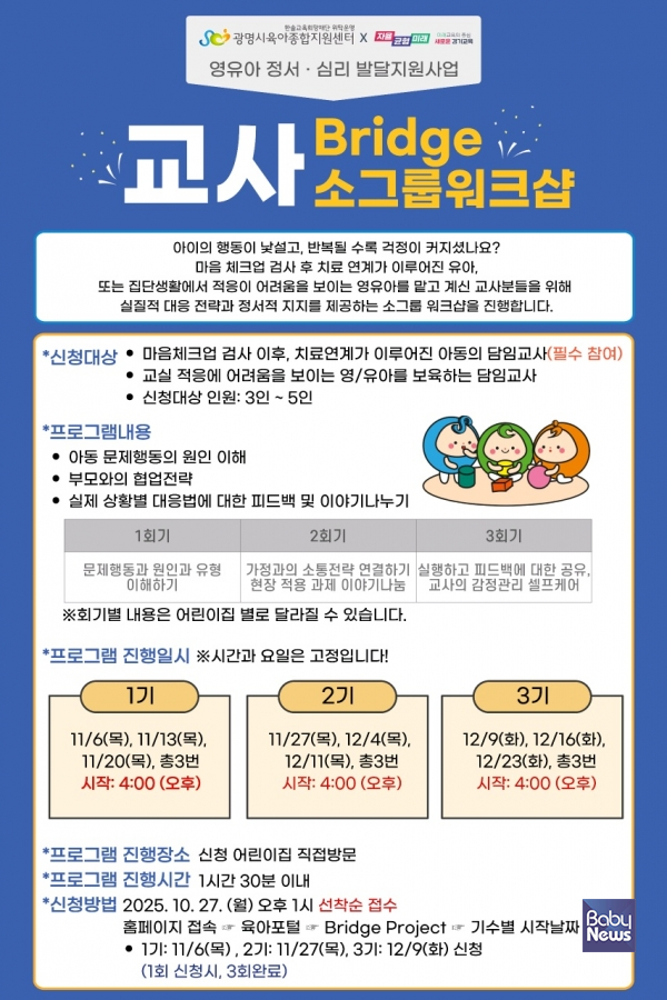 [베이비뉴스] 광명시육아종합지원센터 , 가정-교사-어린이집 잇는 마음건강 네트워크 ‘브릿지 프로젝트’ 추진