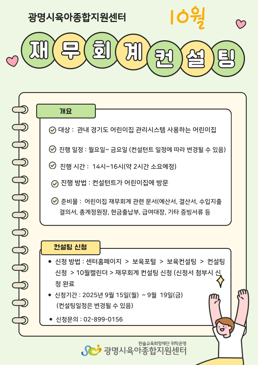 2025년 10월 어린이집 재무회계 컨설팅 2025.10.01(수) 14:00 ~ 16:00