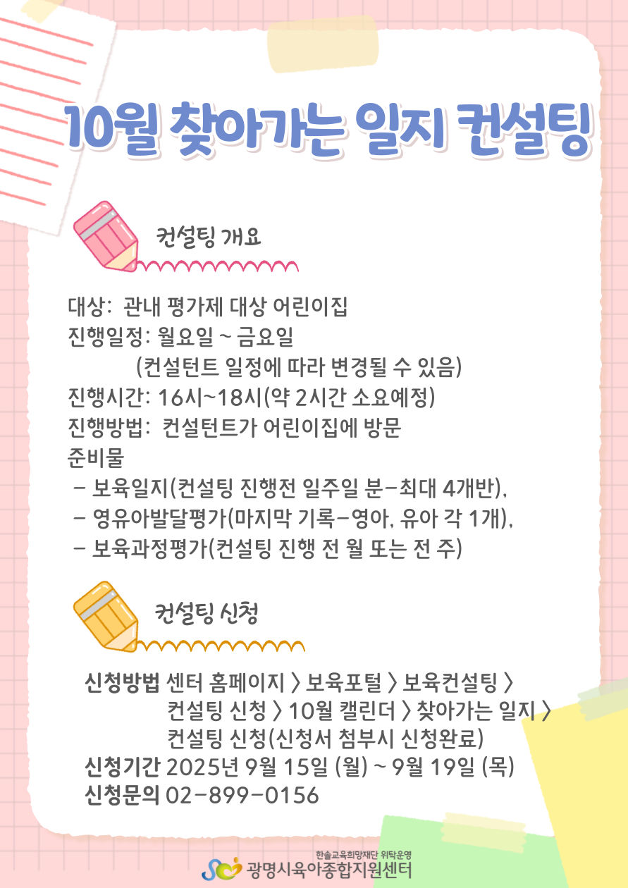 2025년 10월 어린이집 평가제 컨설팅 2025.10.01(수) 09:30 ~ 12:30