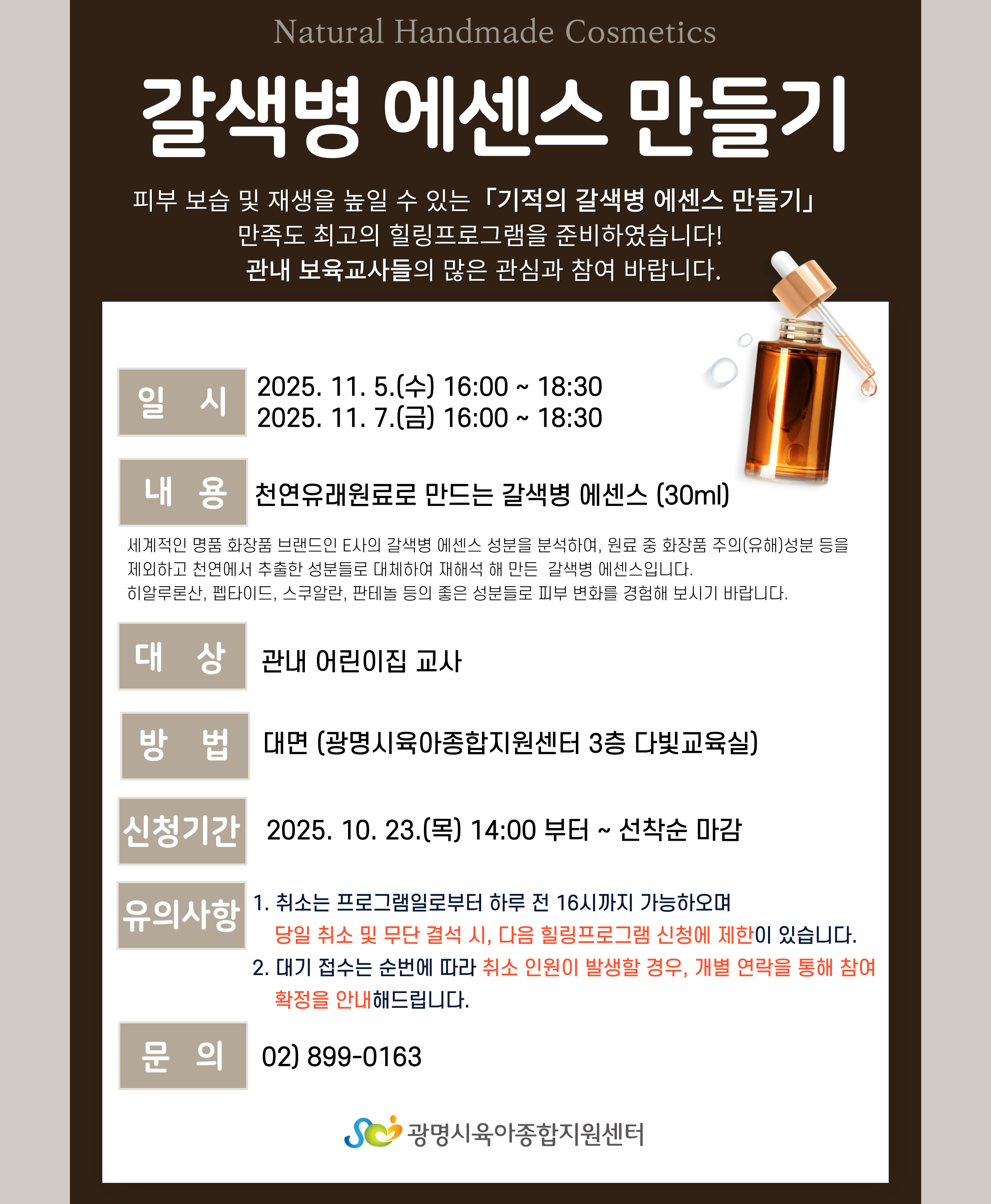 기적의 갈색병 에센스 만들기 2025.11.07(금) 16:00 ~ 17:30